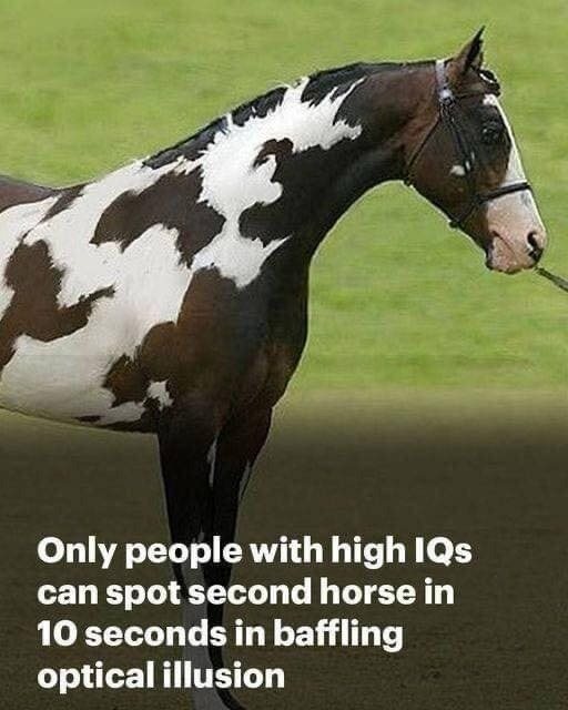 The optical illusion showcases a mature brown and white horse. Spectators are tasked with finding the additional horse in the image. Yet, there is a catch: many individuals are searching for “a second horse” while trying to decipher the optical illusion. Nonetheless, this visual trick is designed to symbolize intelligence as the observer must think outside the box to discover the second horse.