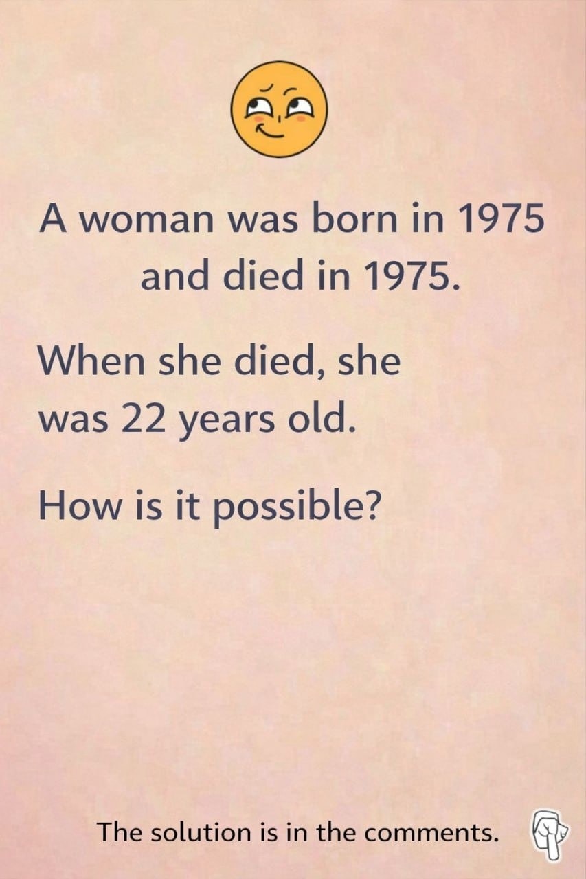 The opening sentence seems illogical: a woman was born and died in 1975, but would she be 22 years old? Unless you’re a time traveler (and even then!), it seems impossible. So, of course, we come up with explanations. A typo? A different calendar? We’re complicating things… when the answer is much simpler than we think.