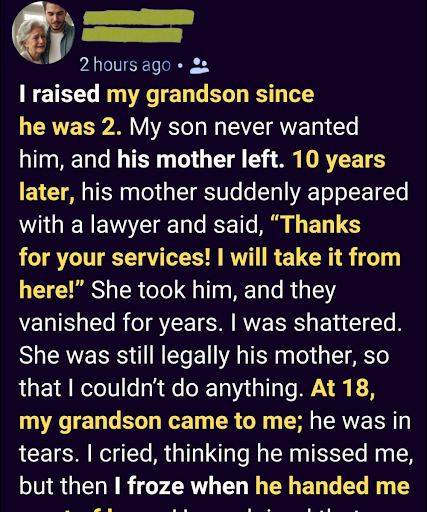 “I’m eighteen now,” he explained. “I can decide where I live. And I want to live with you.”